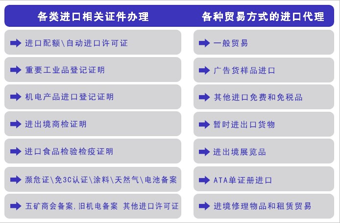 o 各类进口相关证件办理及贸易方式进口代理
